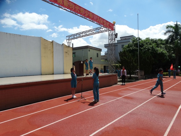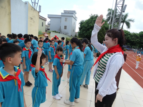 戴上鮮艷的紅領(lǐng)巾后,學(xué)校大隊(duì)輔導(dǎo)員余瑩瑾老師帶領(lǐng)新隊(duì)員宣誓,馬耀強(qiáng)校長為新成立的中隊(duì)授予中隊(duì)旗,為中隊(duì)輔導(dǎo)員頒發(fā)聘任書。新隊(duì)員馮梓瑜代表隊(duì)員們表達(dá)了加入少先隊(duì)的自豪感,并表態(tài)要努力成為一名優(yōu)秀的少先隊(duì)員;高年級的隊(duì)員代表向新隊(duì)員表示衷心的祝愿和熱烈的歡迎。本次新隊(duì)員入隊(duì)儀式在“準(zhǔn)備著,為共產(chǎn)主義事業(yè)而奮斗!時刻準(zhǔn)備著!”的呼號聲中落下帷幕。