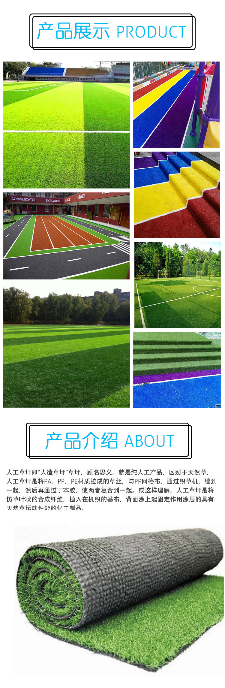 人工草坪即“人造草坪”草坪,顧名思義,就是純?nèi)斯ぎa(chǎn)品,區(qū)別于天然草,人工草坪是將PA,PP,PE材質(zhì)拉成的草絲,與PP網(wǎng)格布,通過織草機(jī),縫到一起,然后再通過丁本膠,使兩者復(fù)合到一起。或這樣理解,人工草坪是將仿草葉狀的合成纖維,植入在機(jī)織的基布,背面涂上起固定作用涂層的具有天然草運(yùn)動(dòng)性能的化工制品。