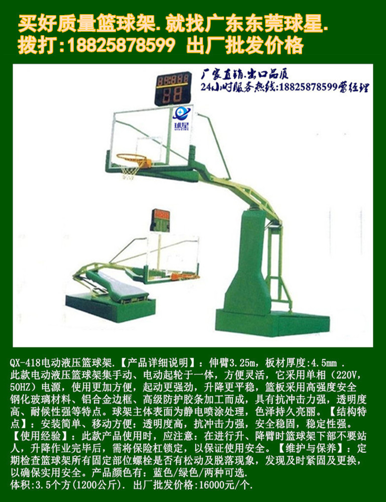 籃球架系列產(chǎn)品顏色為:綠色、藍(lán)色、可選.可根據(jù)用戶需求改變顏色,產(chǎn)品在沒有特別說明的前提下默認(rèn)為根據(jù)庫(kù)存隨機(jī)從綠、藍(lán)兩種顏色中隨機(jī)抽取發(fā)貨。
