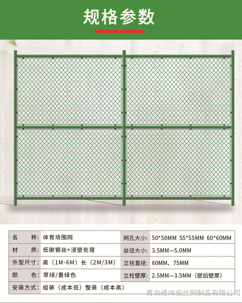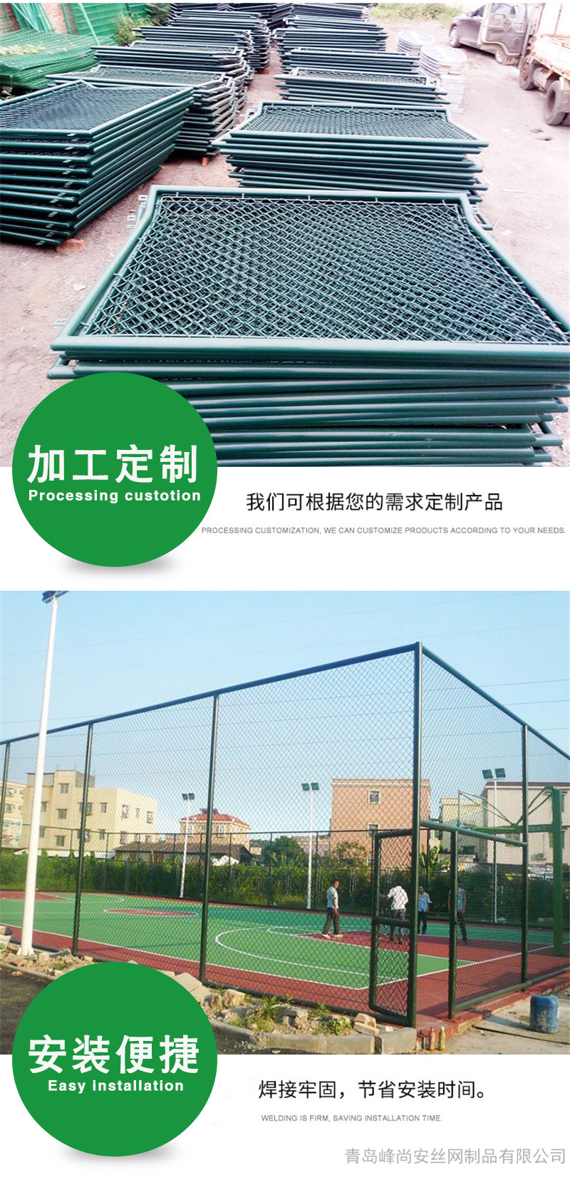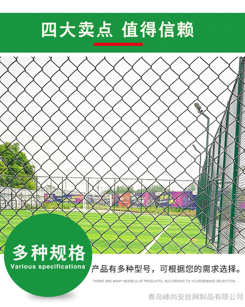 運(yùn)動(dòng)場圍網(wǎng)優(yōu)點(diǎn):具有防腐、防老化、抗曬、耐候、色彩鮮亮、網(wǎng)面平整,強(qiáng)力張緊,不易受外力撞擊變形、現(xiàn)場施工安裝、靈活性強(qiáng),可根據(jù)現(xiàn)場要求隨時(shí)調(diào)整造型和尺寸。運(yùn)動(dòng)場圍欄網(wǎng)具有產(chǎn)品色彩鮮亮、規(guī)格齊全的特點(diǎn)。
