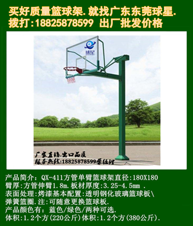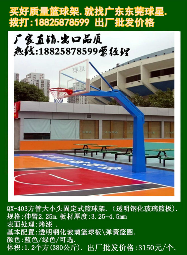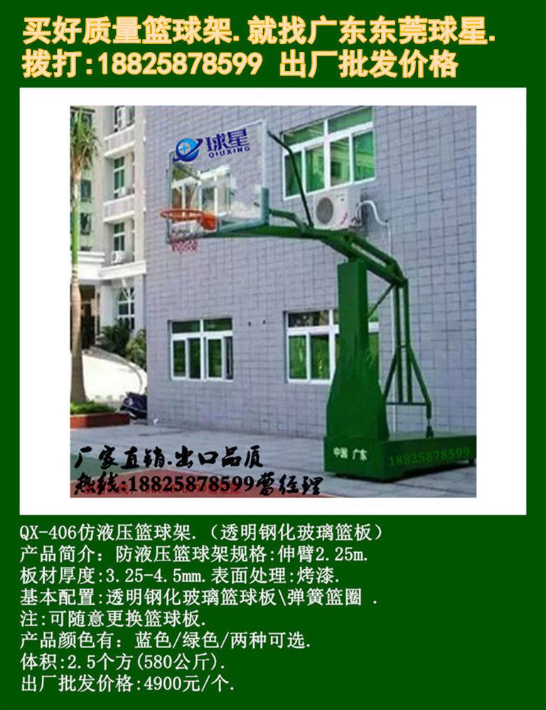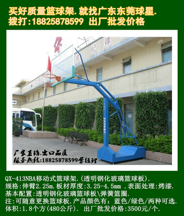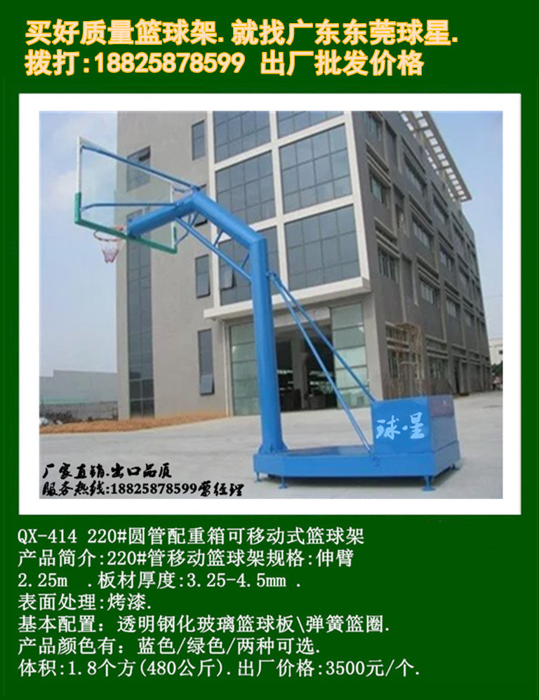 籃球架系列產品顏色為:綠色、藍色、可選.可根據用戶需求改變顏色,產品在沒有特別說明的前提下默認為根據庫存隨機從綠、藍兩種顏色中隨機抽取發(fā)貨。