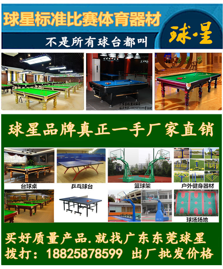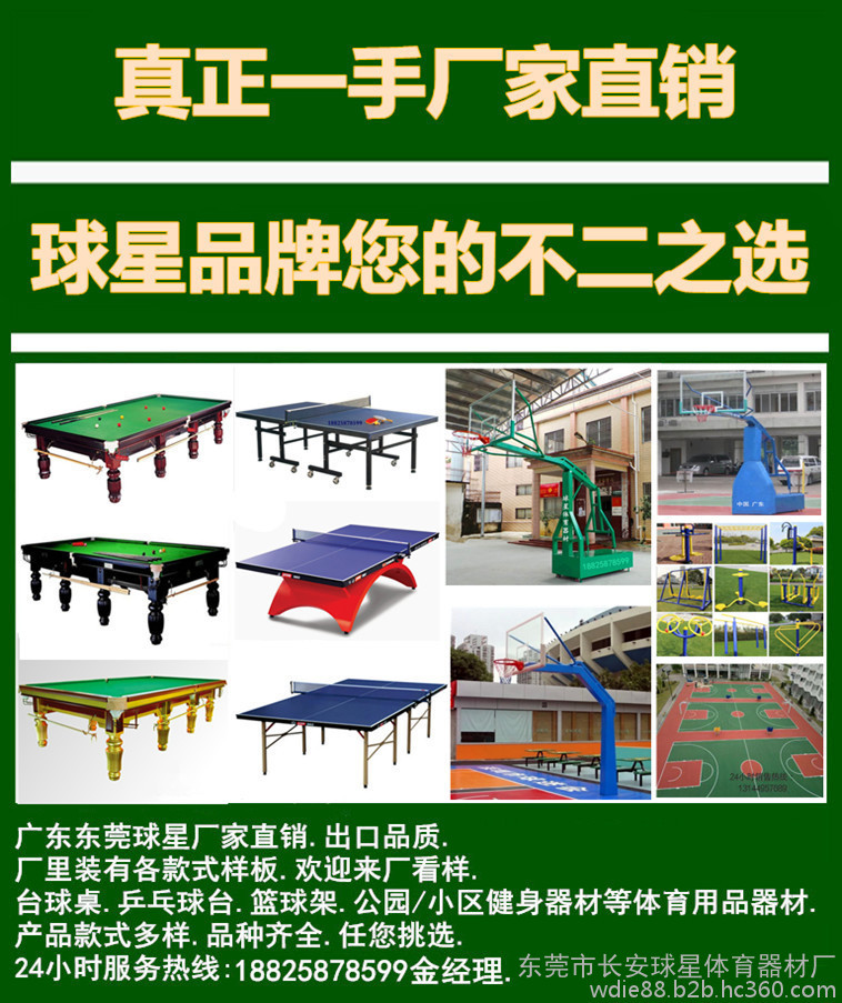 東莞市長安球星體育器材廠集三十多年管理、制造經驗,專業(yè)制造桌球臺、乒乓球臺、籃球架、桌上足球.公園.小區(qū)健身器材等./等體育用品。秉著質量至上,信譽好的原則,所做產品深受客戶好評。桌球臺、乒乓球臺、籃球架.桌上足球.公園小區(qū)健身器材五個系列產品遠銷歐洲,南、北美洲,澳大利亞及部分阿拉伯**。