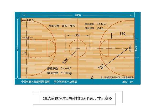 凱潔地板性能特點(diǎn): 產(chǎn)品名稱:運(yùn)動(dòng)型木地板 用材:實(shí)木運(yùn)動(dòng)地板 隔離膜 承載板 彈性龍骨 減震膠墊 執(zhí)行標(biāo)準(zhǔn):GB/T20239-2015 使用范圍:室內(nèi)籃球、羽毛球、舞臺(tái)、足排球、壁球、健身等綜合性運(yùn)動(dòng)場(chǎng)所。 使用年限:25年 二 、變形 地板在動(dòng)能荷載作用下,變形的能力取決于彈性、粘度和彈性層厚度。過(guò)多的變形會(huì)降低腳的安全性,增加扭傷發(fā)生的幾率。 三 、表面摩擦 表面摩擦極為重要且具有佳性。價(jià)值觀的變化而變化,根據(jù)不同的運(yùn)動(dòng)。在運(yùn)行, 例如,大限度地堅(jiān)持腳和需要地板,而網(wǎng)球需要有控制的滑梯。在 無(wú)論如何,腳必須能夠很容易地旋轉(zhuǎn)。無(wú)阻塞或風(fēng)險(xiǎn)扭點(diǎn)支持。以 改善表面摩擦,合成材料壓花。 四 、球反彈 球的反彈是球類運(yùn)動(dòng)中非常重要的一個(gè)因素。反彈必須是均勻的和規(guī)則的整個(gè)表面。 更重要的是,地板不應(yīng)吸收反彈等。在這種情況下不可能進(jìn)行正規(guī)的比賽。 表面。國(guó)際籃球聯(lián)合會(huì)章程規(guī)定球的反彈高度落在 打面高度1.8米必須至少90% 附上:籃球地板表面摩擦和反彈力圖示: