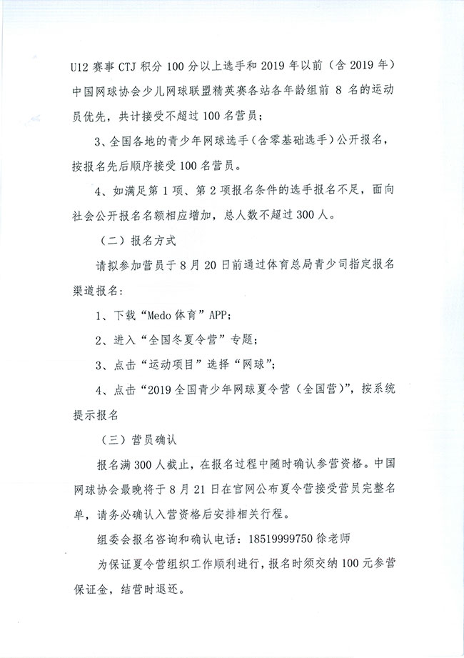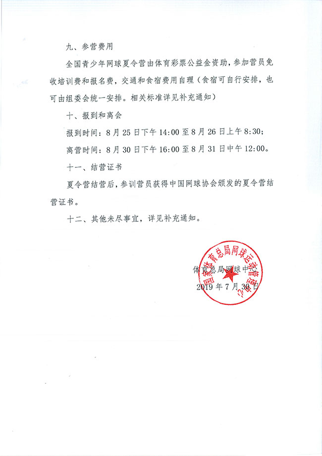 關(guān)于舉辦2019年全國青少年網(wǎng)球夏令營(全國營)的通知