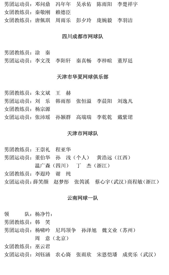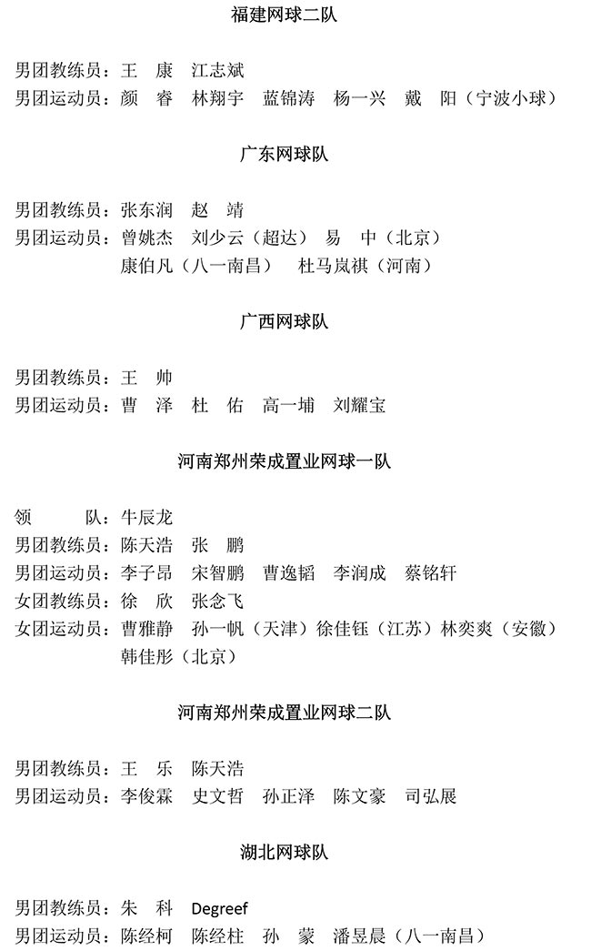 2019年全國(guó)網(wǎng)球青年團(tuán)體錦標(biāo)賽報(bào)名匯總