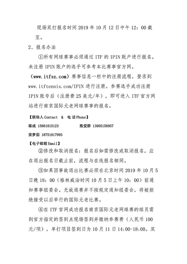 2019年ITF南京國際元老網(wǎng)球巡回賽競賽規(guī)程
