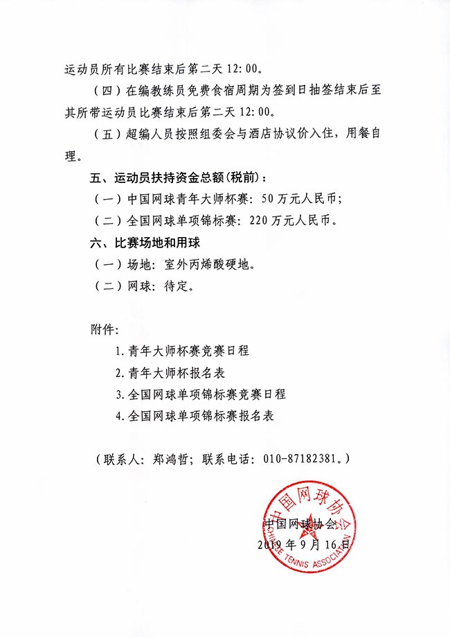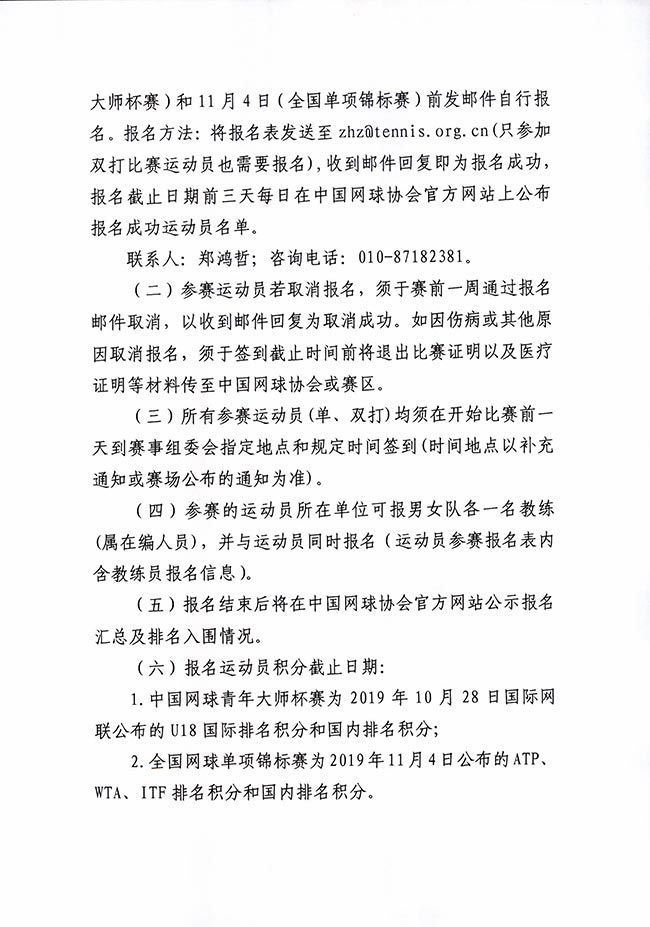 1.2019年中國網(wǎng)球青年大師杯(中國網(wǎng)球未來之星大獎賽)日程安排
