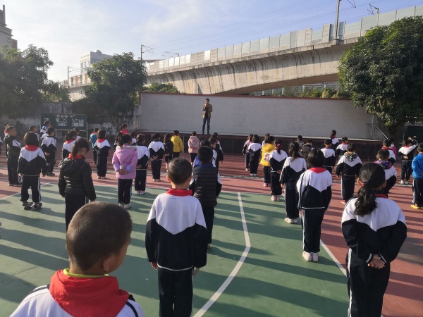 活動二:“憲法晨讀”活動結(jié)束之后,8:10分全校師生集合后操場,德育處石寶行主任,再一次給學(xué)生普及憲法知識,告訴學(xué)生:我們很幸運(yùn),因為我們出生在一個法治的國家?!稇椃ā穼σ粋€國家而言,如鎧甲,如標(biāo)桿;對我們而言,如甘露,如陽光。列舉了我們認(rèn)真上學(xué)、接受教育,是遵守《憲法》,我們保護(hù)環(huán)境,節(jié)約資源,是遵守《憲法》,我們學(xué)習(xí)、踐行社會主義核心價值觀,也是遵守《憲法》,讓學(xué)生明白《憲法》就在我們身邊,《憲法》陪伴我們成長。最后號召所有的學(xué)生共同努力,學(xué)習(xí)憲法、遵守憲法,以憲為綱,知法守法,做一名新時代的合格學(xué)生!