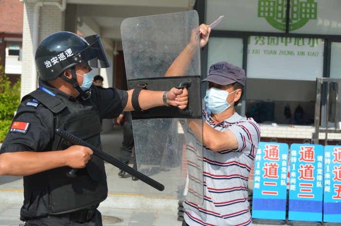 通過演練,使保安和全體師生進(jìn)一步了解應(yīng)對非法侵入事件的行動步驟,明確各自的分工與職責(zé),提高保安和全體老師,學(xué)生防范、自救、合作意識與能力。提高學(xué)校應(yīng)急小組在反恐防暴工作中的組織領(lǐng)導(dǎo)和處理應(yīng)對能力,使保安和全體老師樹立確保學(xué)生不受傷害的觀念,激發(fā)保安和全體老師臨危不懼的精神。