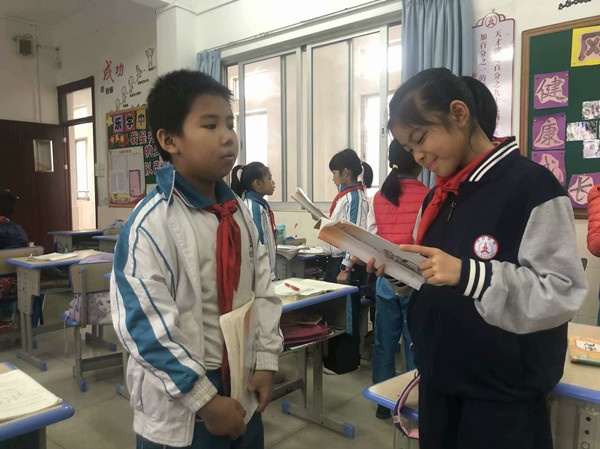 活動中,孩子們精神抖擻,用真摯飽滿的情感和鏗鏘有力的語言,將《弟子規(guī)》《千字文》《論語》《中庸》《老子》《史記-資治通鑒》等經(jīng)典國學(xué)詩文進(jìn)行背誦考核。本次考核活動形式由高年級的“考官”考低年級的學(xué)生,中高年級則班級之間互考,各語文教師組織監(jiān)考。各班校本課程《國學(xué)經(jīng)典》的通過率均超過98%,還有很多孩子熱愛國學(xué),超前誦讀學(xué)習(xí)國學(xué)經(jīng)典詩文。孩子們聲情并茂、朗朗上口的古詩文誦讀得到了語文老師們的稱贊,