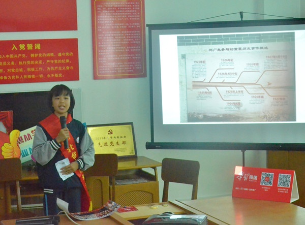 活動的第二項(xiàng)由紅領(lǐng)巾宣講員為大家分享中山縣首任團(tuán)委書記劉廣生的故事。每一個(gè)宣講員都聲情并茂地分別向大家介紹了“擇師運(yùn)動”“賣蔗埔起義”“秋收暴動”。在宣講過程中少先隊(duì)員們深刻感受到今天的生活是先輩們用他們的智慧和心血創(chuàng)造的,要珍惜今天的幸福生活,好好學(xué)習(xí),奮發(fā)圖強(qiáng)。