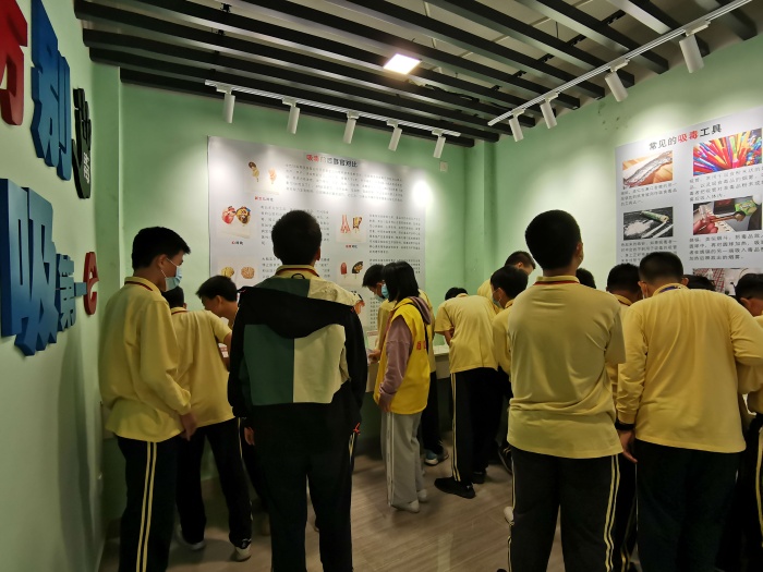 參觀過程中,講解員分別從毒情形勢、毒品樣品展示、禁毒法律法規(guī)、禁毒史實和打擊毒品違法犯罪成果進行了詳細的講述。面對著一幅幅圖片資料和實物展示,同學(xué)們?nèi)轿?、多角度地了解了禁毒歷史和毒情形勢,對毒品的危害性和禁毒的必要性有了更為全面的認識。除了認真聽取教育基地工作人員的解說、觀看圖片、實物、視頻,同學(xué)們還積極參與禁毒知識搶答,對毒品的性質(zhì)、種類、危害以及南區(qū)近年來的禁毒成果有了更深的了解與認識,進一步意識到保持積極健康的生活方式、提高防毒意識、增強防毒能力的重要性,尤其對新型毒品和濫用止咳水給青少年帶來的危害有了更深的體會。