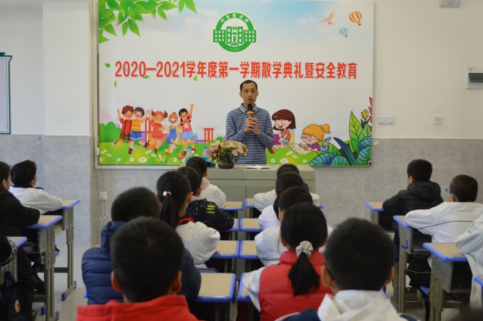 一路歡歌,一路笑語;一段征程,一份收獲。緊張而匆忙的秋季學(xué)期在不知不覺間悄然而逝,在全校師生的共同努力下,本學(xué)期的教育教學(xué)工作圓滿完成。為全面總結(jié)一學(xué)期來同學(xué)們?cè)谛5某砷L(zhǎng)與發(fā)展,樹立典型,表彰先進(jìn),2021年1月15日上午,南區(qū)竹秀園中心小學(xué)舉行2020學(xué)年度秋季學(xué)期散學(xué)典禮暨安全教育。由于疫情的關(guān)系,此次散學(xué)典禮安排各班在教室進(jìn)行。