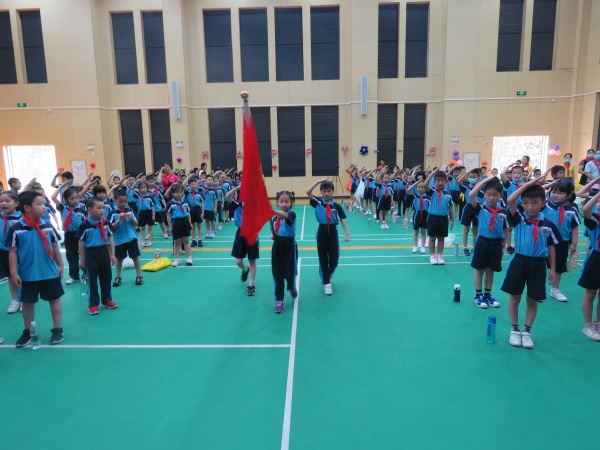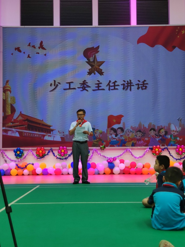 上午10點,全校師生在體育館開展“迎接少代會、爭做好隊員”“六一”主題教育活動?;顒又?,隊員們匯報了“廣東紅領(lǐng)巾致敬逆行先鋒”活動成果,有的隊員表演了《預(yù)防病毒拍手歌》,有的隊員展示了“同心戰(zhàn)疫”繪畫作品,接著進行了最激動人心的“抗疫小衛(wèi)士章” 頒章活動以及同學(xué)們期待已久的“六一”文藝匯演。