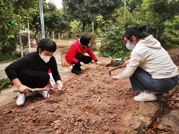 本次種植活動得到教師們的積極響應(yīng)和熱情參與,大家準(zhǔn)備好了玉米、向日葵種子以及水桶、鐵鍬、鐵耙等工具,分工合作地對各區(qū)域進行栽種。首先,教師們自行分配成四個小組,每個小組負責(zé)兩塊菜地,大家分工合理,有的松土,有的挑畦,有的挖坑,有的澆水。有許多年輕教師對種植的過程充滿新鮮感,總是小心翼翼的播下種子,生怕哪一個步驟出錯,影響植物的成長。種植過程中充滿著歡聲笑語,讓植物園地充滿了生機?;顒咏Y(jié)束后,部分班級還給學(xué)生觀看了老師勞動的視頻和照片,讓在家學(xué)習(xí)的同學(xué)也能夠感受到種植的快樂。