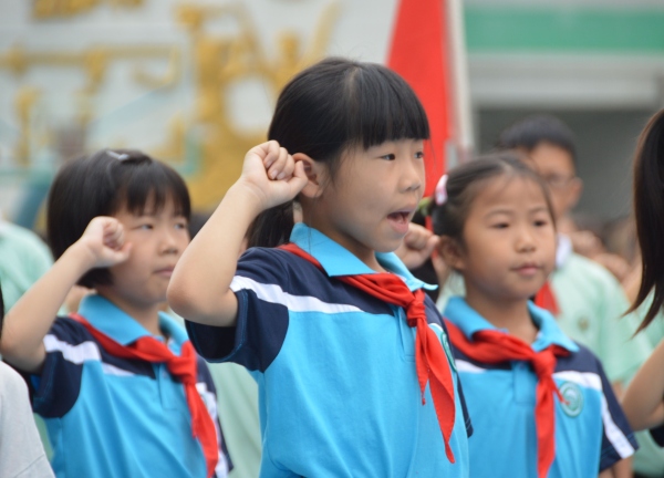 “準(zhǔn)備著,為共產(chǎn)主義事業(yè)而奮斗!”“時(shí)刻準(zhǔn)備著!”在全體少先隊(duì)員共同呼號(hào)聲中,本次新生入隊(duì)儀式落下帷幕。佩戴上鮮艷的紅領(lǐng)巾,讓每一名少先隊(duì)員都增添了一份自豪與責(zé)任;莊嚴(yán)而隆重的儀式,給每一名新隊(duì)員心中都留下無(wú)比神圣和難忘的記憶,為他們的人生畫上濃墨重彩的一筆,也讓孩子們對(duì)他們胸前的紅領(lǐng)巾,多了一份驕傲與敬畏之心。光榮的少先隊(duì)員們,必將不辱使命,奮勇前進(jìn)!