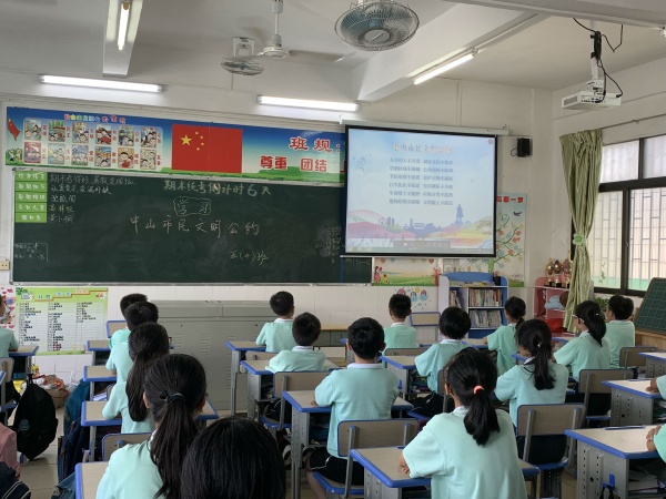為培養(yǎng)和弘揚社會主義核心價值觀,提高市民文明和社會文明程度,提升城市文明形象,2019年6月21日,竹秀園中心小學組織學生學習《中山市民文明公約》。