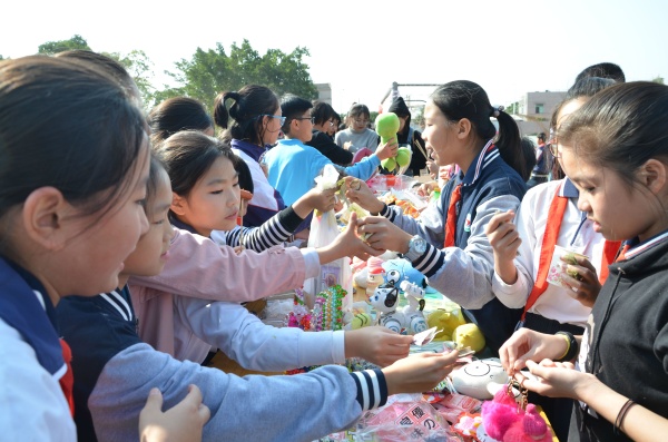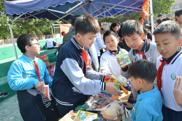 此次愛心義賣中,孩子們?yōu)榛I集更多的善款,可謂“八仙過海各顯神通”。各個班級盡心竭力,巧花心思地布置攤位,把自己提前精心準(zhǔn)備的“產(chǎn)品”放在指定攤位最顯眼的位置上,有各類課外書及學(xué)習(xí)用品,有可愛的玩偶玩具,還有自己親手做的小手工等,東西琳瑯滿目,爭相吸引周圍的人們來采購。宣傳形式多樣,營銷方式也大膽奇特,有的大打折扣,“跳樓價”甩賣吸引顧客的目光;有的“流動商家”帶上自己的“產(chǎn)品”到處找尋購買者;有的抽獎、玩游戲,趣味十足。同學(xué)們爭相選購自己心儀的物品,盡己所能獻(xiàn)愛心、行善舉。