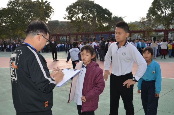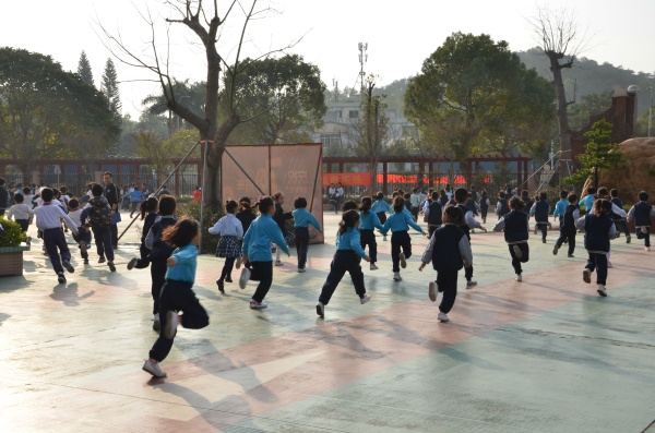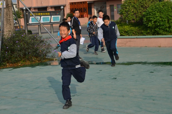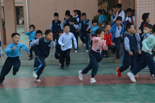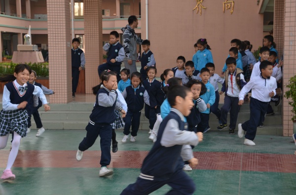 隨著警鈴的響起,疏散演練拉開了序幕。學校領(lǐng)導、老師迅速組織同學們撤離教室,在全體教師的有序組織下,學生迅速疏散到操場。撤離過程中,同學們時刻保持警覺,彎著腰、壓低身體迅速前進,孩子們熟練地利用自己的手或者衣物捂住鼻口,防止煙霧的吸入。樓上的班級和老師一起下樓梯。在老師的引導下,有序地沿左、中、右3個樓梯口疏散。從警報響起到800多名全體師生就位于安全地點,用時2分15秒,疏散演練的效果顯著。同學們到達指定疏散地點后,各班立即匯報人數(shù),班級班干部向相關(guān)老師報告疏散情況以及到場人數(shù)。
