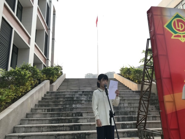 4月29日早上,良都中學在學校金色太陽廣場組織了全校師生參加升旗禮。升旗禮一結束,就展開了主題為《弘揚“五四”精神》的國旗下講話活動。國旗下講話的來自初一(4)班的優(yōu)秀學生代表鄧穎欣同學。