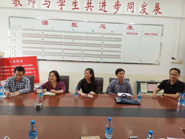 下午兩點剛過,華南師大專家組就驅(qū)車來到學(xué)校,良都中學(xué)陳燦斌副校長與吳春蘭副主任迎接了到訪專家。首先,陳校長帶專家們參觀了校園,簡要介紹了學(xué)校硬件建設(shè)情況。接著,專家們來到二樓會議室,陳校長向已經(jīng)集中在會議室等候的生物、地理、道法三個學(xué)科組的老師介紹了對應(yīng)學(xué)科的指導(dǎo)專家,并向?qū)<覀兒喴獏R報了辦學(xué)規(guī)模、師資隊伍、學(xué)科教學(xué)等方面的情況,以及教學(xué)改革和學(xué)校發(fā)展方面所遇到的困難和問題。