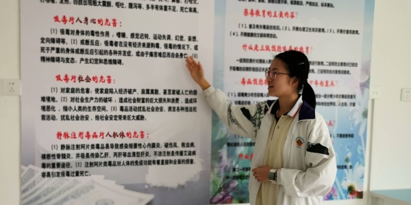 同學(xué)們在吳宇捷同學(xué)的帶領(lǐng)下,在禁毒教育展覽室里,對各種毒品及毒品的危害再作了仔細的認識,對各種常見的毒品的危害再作了深入的了解:通過吳宇捷同學(xué)的講解,同學(xué)們再次參觀展覽室里展示的樣板、圖片,清楚認識了常見毒品的模樣;通過閱讀展覽室里有關(guān)毒品的知識介紹、吸毒者的反面教材案例,同學(xué)們深刻認識到那些毒品對人們身體健康的嚴(yán)重危害、毒品對家庭、對社會的嚴(yán)重影響。