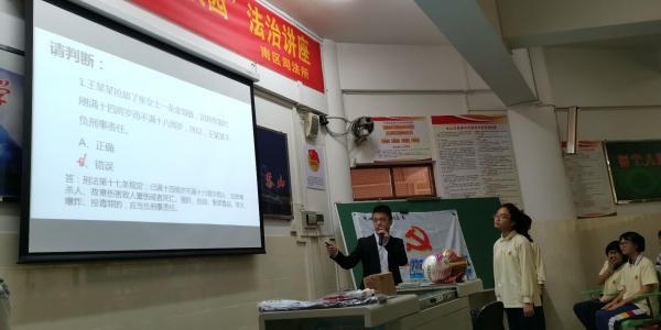 3月19日下午,良都中學(xué)在學(xué)校階梯室組織學(xué)生參加了“預(yù)防未成年人犯罪”的法律知識講座,講座上邀請了廣東凱行律師事務(wù)所賀嘉發(fā)律師跟同學(xué)們進行法律知識的講解。