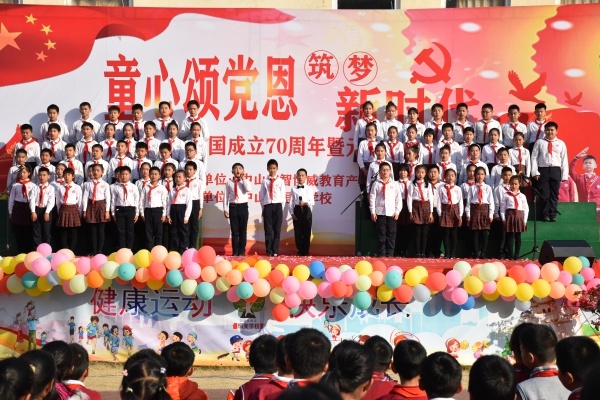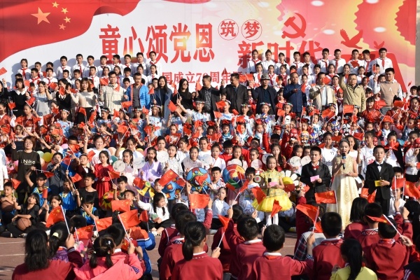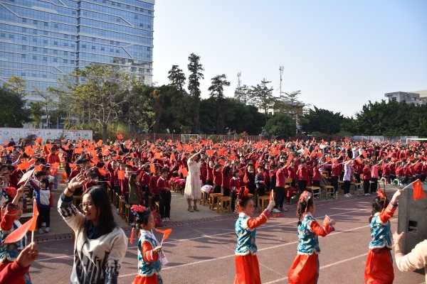 現(xiàn)場氣氛高潮迭起,臺上臺下的現(xiàn)場互動之聲更是此起彼伏,精彩的表演不時博得現(xiàn)場觀眾陣陣熱烈的掌聲,喜慶歡樂的氣氛洋溢在舞臺的每一個角落,精彩的節(jié)目讓校園充滿了歡笑和溫馨。最后,全體小演員們和在場的所有師生、家長們齊唱《我和我的祖國》來表達對祖國的熱愛和那顆熾熱的赤子之心。