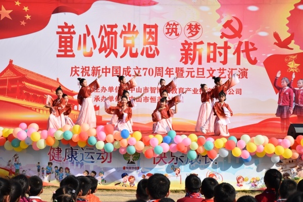 為慶祝新中國成立70周年,值2020年元旦來臨之際,為了豐富學生的校園生活,提高學生的活動能力,促進學生的全面發(fā)展,營造文化氛圍,以豐富多彩的形式辭舊迎新,2019年12月27日下午,恒美學校舉行題為“童心頌黨恩,筑夢新時代”——慶祝新中國成立70周年暨元旦文藝匯演的活動。