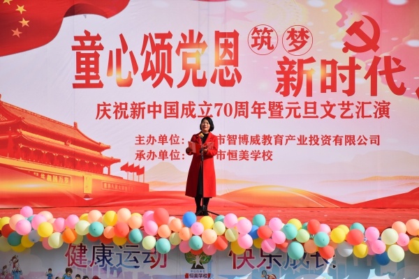 活動開始,恒美學校韓少蘭校長為本次活動作了精彩的致辭,她用“穩(wěn)中求進,好上加好,逐夢2020年”為主題,向來賓們總結了2019年的成績,展望明年學校的美好前景。