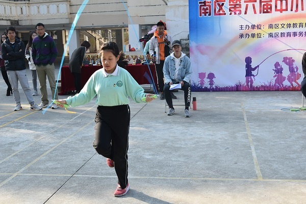 2019年12月10日,在恒美學(xué)校的操場上熱火朝天,人聲鼎沸,這里正在舉行兩年一度的南區(qū)第六屆中小學(xué)生跳繩比賽。