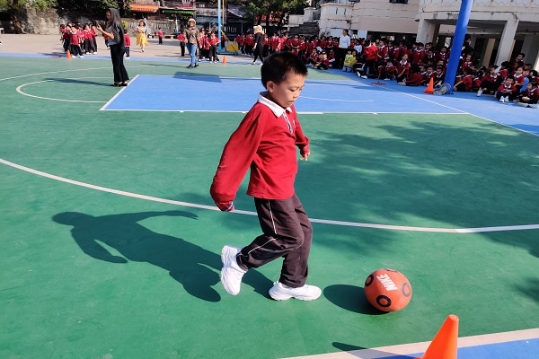在激昂的音樂中,恒美學(xué)校趣味運(yùn)動會拉開了帷幕。本次趣味運(yùn)動會的團(tuán)體項(xiàng)目設(shè)有“拔河比賽”“趕豬比賽”“足球接力”等富有趣味的項(xiàng)目。同學(xué)們本著“友誼第一,比賽第二”的原則,分享著比賽中的喜悅,老師們也互相傳授著比賽的技巧。賽場上的比賽選手們在爭分奪秒、認(rèn)真比賽,場下的啦啦隊(duì)熱情鼓舞、歡呼吶喊。趣味十足的游戲,幽默詼諧的動作讓人樂開懷,老師們紛紛拿出手中的照相機(jī)拍照??廴诵南业谋荣惌h(huán)節(jié)一個接著一個,比賽的選手們一起奮勇爭先,努力拼搏,“四(3)班加油!”“四(4)班加油!”老師和啦啦隊(duì)的加油聲、吶喊聲、歡呼聲沸騰了整個操場,到處洋溢著活力、滲透著快樂、充滿著陽光! 在這明媚的下午,家長,孩子,老師們一同分享同一份溫暖的陽光,享受運(yùn)動帶來的樂趣。