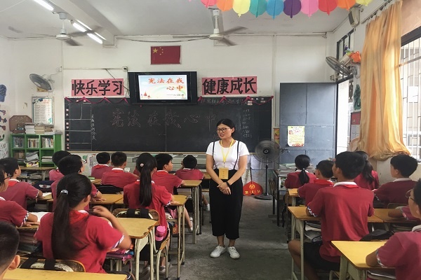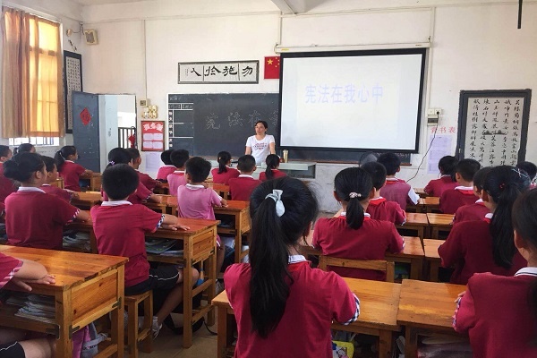恒美學校各班利用班隊課的時間,選擇憲法序言及正文中的部分章節(jié)、條款,組織學生集體朗讀、學習。隨后,各班主任老師結(jié)合視頻、圖片、實例向?qū)W生展開教育,讓學生知道憲法的基本知識。例如憲法在所有法律中的地位、國家憲法日的時間、憲法規(guī)定人民享有的權(quán)利等知識。同時讓學生增強憲法意識,認真學習憲法有關知識,明確憲法的有關規(guī)定,知道要與違反憲法的現(xiàn)象做斗爭,以實際行動維護憲法的尊嚴。