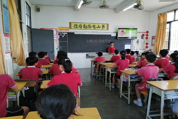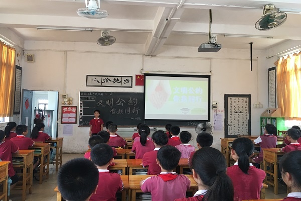班會課上,學(xué)生和老師共同朗讀了這份《中山市文明公約》。老師從公約的內(nèi)容出發(fā),帶領(lǐng)學(xué)生共同學(xué)習(xí)“友善”、“誠實”的含義,引導(dǎo)學(xué)生在平常的生活當(dāng)中學(xué)會友善待人,言而有信。老師通過舉例子,引導(dǎo)學(xué)生體會在公共場所內(nèi)不追逐打鬧不喧嘩的重要性,更提醒學(xué)生在圖書館、電影院等安靜的場所要學(xué)會用耳語,要自覺排隊,不與他人爭搶。勤儉節(jié)約是中華民族的傳統(tǒng)美德,老師出示了平常看到學(xué)生午餐時浪費糧食的圖片,讓學(xué)生感受到浪費的可恥。同學(xué)們也紛紛積極表示不能隨地扔垃圾,要隨手撿起身邊的垃圾,提醒爸爸媽媽車輛不能亂停亂放等。提醒孩子要從身邊的小事做起,從自己的一言一行做起,爭當(dāng)文明小公民。