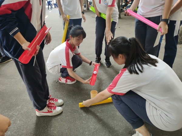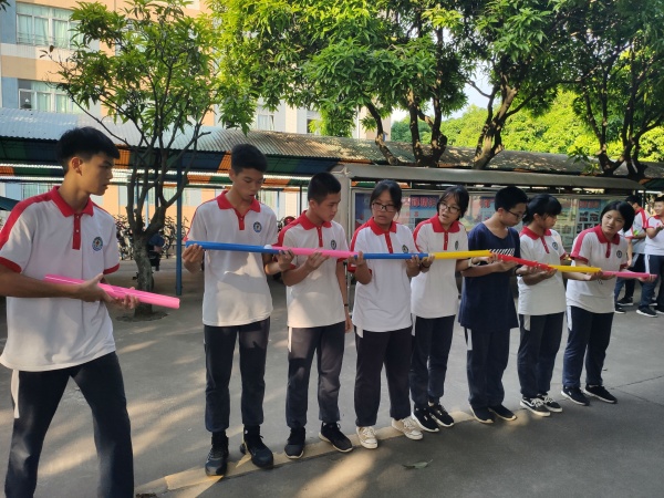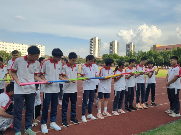 首先,初三年級的學(xué)生們在班主任的帶領(lǐng)下,懷揣期待與熱情,從教室下到操場,在跟班老師和班干部的協(xié)助下,以班級為單位分四組開展“珠行萬里”、“夾板接力賽”活動項目?;顒佑纱死_了序幕,妙趣橫生的比賽環(huán)節(jié)營造了輕松愉快的氛圍,也讓學(xué)生們緩解緊張情緒,盡情地投入到活動中來。