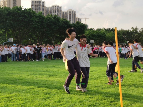接著,進(jìn)行二人三足迎面接力賽,每個班級選取10位男同學(xué),10位女同學(xué)代表班級進(jìn)行比賽,最快到達(dá)終點(diǎn)的班級獲勝。隨著哨聲吹響,同學(xué)們便開始奮力沖刺,有的同學(xué)健步如飛,有的同學(xué)寸步難行,還有的同學(xué)步調(diào)不一,不慎摔倒,但是,他們沒有就此放棄,而是迅速爬起,重新調(diào)整隊形,繼續(xù)追趕對手。此時的同學(xué)們都將學(xué)習(xí)的壓力拋諸腦后,玩得不亦樂乎。