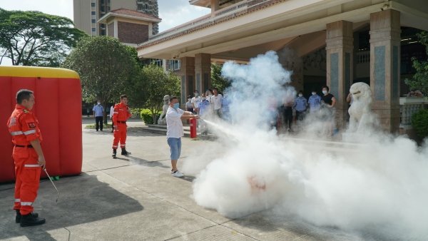 培訓(xùn)第二項(xiàng)內(nèi)容是室外實(shí)踐,由居安消防職業(yè)培訓(xùn)學(xué)校的教官歐文獻(xiàn)、黎浩林執(zhí)教,課程包括防火面具的使用、逃生帳篷火災(zāi)逃生、手提式干粉滅火器的檢查及使用方法等。在授課中,理論結(jié)合實(shí)際,現(xiàn)場(chǎng)做了示范,讓所有人都參與了實(shí)際演練,從使用滅火器到逃生屋模擬活動(dòng)中,大家都積極參與活動(dòng),氣氛高漲。