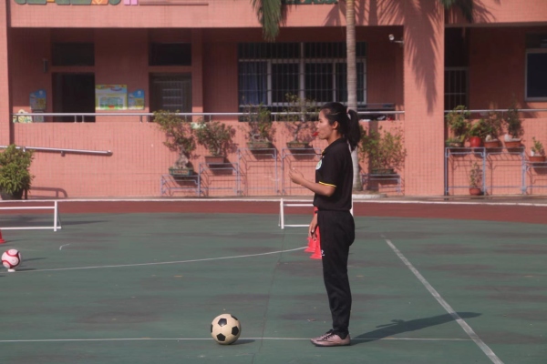 第二節(jié)課是由馬秋洪老師帶領(lǐng)對甫小學(xué)四(1)班的同學(xué)開展足球主題的體育課。教師、學(xué)生們英姿颯爽的身影,在操場上奔跑著、跳躍著,展現(xiàn)出了力與美的有機融合。