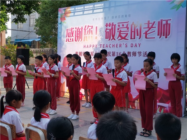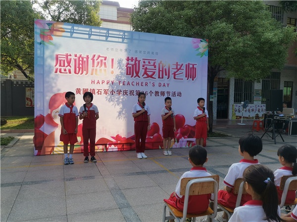 為營造濃郁的尊師重教節(jié)日氛圍,激發(fā)教師不忘初心、立德樹人的責任感;培養(yǎng)學生尊師敬師、學會感恩的人格品質(zhì)。黃圃鎮(zhèn)石軍小學開展了“感謝您!敬愛的老師”為主題的簡短而隆重的慶祝活動。本次活動由大隊輔導員梁毅強老師主持。