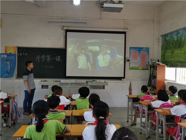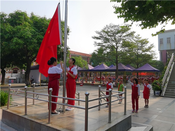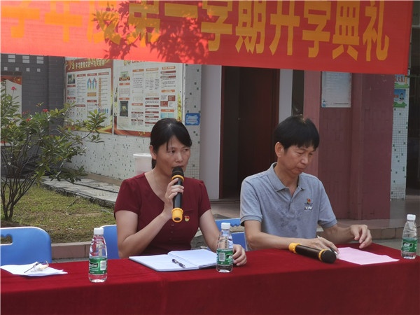 首先,石軍小學(xué)全體師生在大隊(duì)輔導(dǎo)員梁毅強(qiáng)老師主持下進(jìn)行新學(xué)期第一次升旗儀式。隨著莊嚴(yán)肅穆的國(guó)歌聲,鮮艷的五星紅旗徐徐升起,拉開(kāi)了開(kāi)學(xué)典禮的序幕。