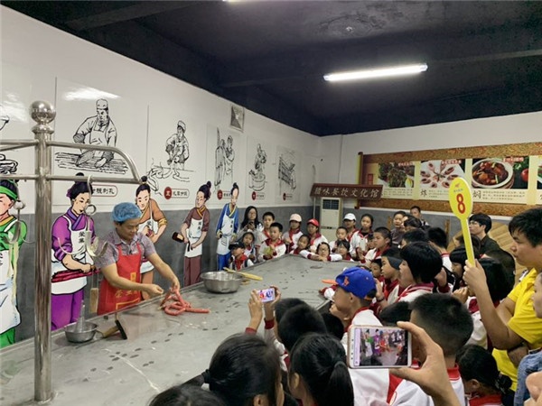 29日一早,全體學(xué)生在學(xué)校的領(lǐng)導(dǎo)和安排下,在老師、導(dǎo)游和家長(zhǎng)的陪同下,坐上了事先安排好的車(chē)輛,懷著愉快和期盼的心情陸陸續(xù)續(xù)地開(kāi)往研學(xué)活動(dòng)的目的地。首先來(lái)到活動(dòng)的第一站——黃圃鎮(zhèn)臘味文化館。在文化館內(nèi),學(xué)生們參觀了關(guān)于臘味傳統(tǒng)文化發(fā)展和傳承的歷史資料、圖片和視頻,還觀看了臘味臘腸制作的具體過(guò)程。