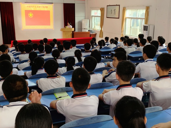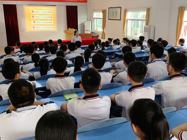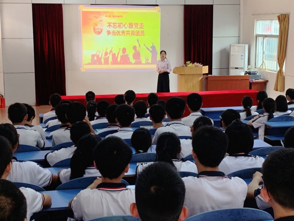 為加深學(xué)生對團的認識,培養(yǎng)學(xué)生的團員意識,增強學(xué)生的責(zé)任感和使命感,4月10日中午,華洋學(xué)校團支部書記李夢桃老師、副書記黎偉婷老師組織了85名新老團員在階梯室開展以“不忘初心跟黨走 爭當(dāng)優(yōu)秀共青團員”為主題的團課培訓(xùn)。