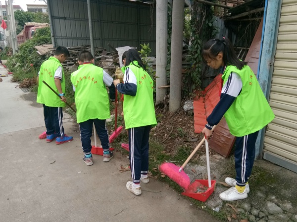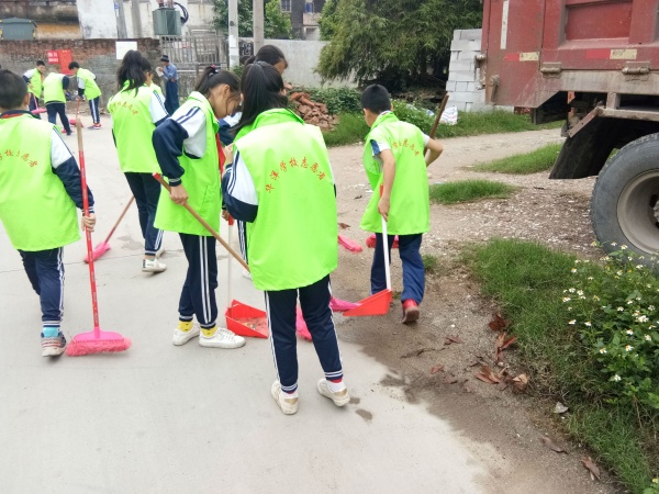 活動(dòng)開始,少先隊(duì)員們興高采烈地拿著勞動(dòng)工具,一個(gè)個(gè)精神抖擻,不怕臟不怕累,爭(zhēng)先恐后干得熱火朝天。有的拿著掃帚清理道路,有的拿著鏟子鏟粘地面比較緊不易打掃的垃圾,還有的同學(xué)兩人一組抬著垃圾桶來回的搬運(yùn)著垃圾,同學(xué)們個(gè)個(gè)手腳并用,將一處處的垃圾清掃一空,老師們也身先士卒,參與到活動(dòng)中來,同學(xué)們見狀更是倍受鼓舞,干得更加積極,師生共同努力,掃得不亦樂乎,街道上、衛(wèi)生死角里到處都可以看見揮舞著的掃把和同學(xué)們辛勤的汗水,現(xiàn)場(chǎng)秩序井然,氣氛熱鬧非常。通過同學(xué)們近一個(gè)小時(shí)的努力,路上展現(xiàn)出一番新的亮麗景象,周邊的村民們也露出了贊許的目光。