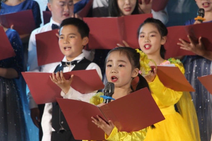 霓虹燈下音樂起,一曲由華曉芳副校長(zhǎng)和學(xué)校鑫夢(mèng)之聲合唱團(tuán)帶來的《歌唱三鑫》合唱點(diǎn)燃了慶典的氣氛,在全體合唱團(tuán)成員的和諧配合中,一幕幕動(dòng)人的情節(jié)、一個(gè)個(gè)可歌可泣的故事躍然心間,感人肺腑!十年,彈指一揮間,在奮斗與輝煌交輝中,我們仿佛看到了一代三鑫人的團(tuán)結(jié)與創(chuàng)新,看到了三鑫一路走來的腳印一串串……