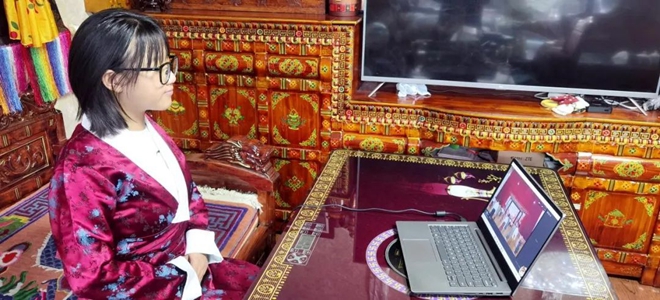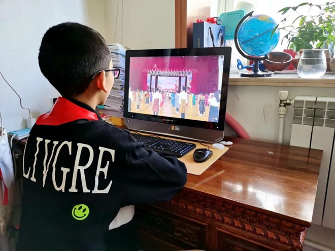 滯留西藏學(xué)生通過網(wǎng)絡(luò)直播參加線上升旗儀式