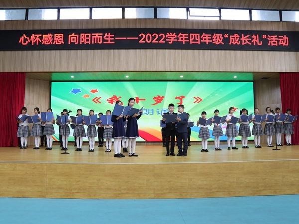 十歲,是人生的一個新起點!十歲,是人生又翻開了嶄新的一頁,為了夢想展翅飛翔,開啟新的旅程。2022年4月7日上午,龍江外國語學校附屬小學四年級全體師生、各班家長代表歡聚在學校體育館,舉行了一場以“心懷感恩,向陽而生” 為主題的成長禮活動。