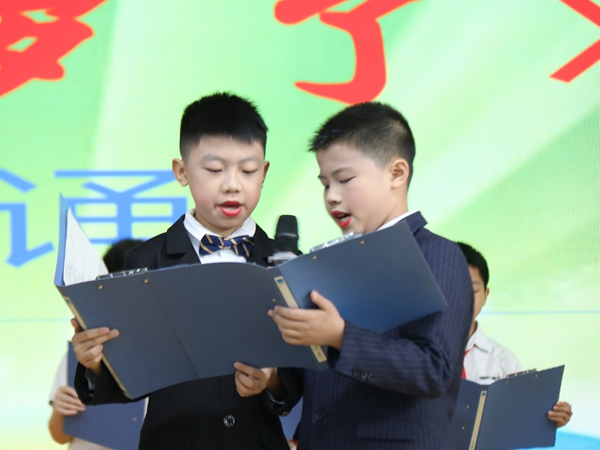 四年級的學生代表帶來的詩歌朗誦《我長大了》拉開了,十年前的某一天,媽媽在微笑中把我們帶到了這個世界,于是在這個大千世界便有了一個小小的我,轉(zhuǎn)眼間,我已經(jīng)長大。