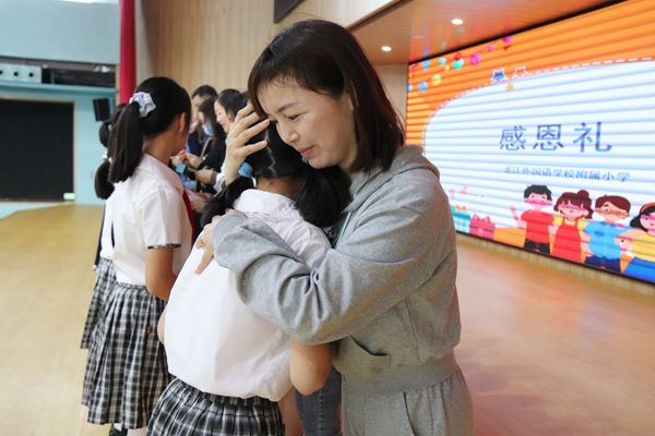 感恩并不只是言語上的表達,更有行動上的體現(xiàn),你瞧!學生代表給四年級全體老師及家長代表送上自制感恩卡,家長們和老師們都收到來著孩子們沉甸甸的愛!