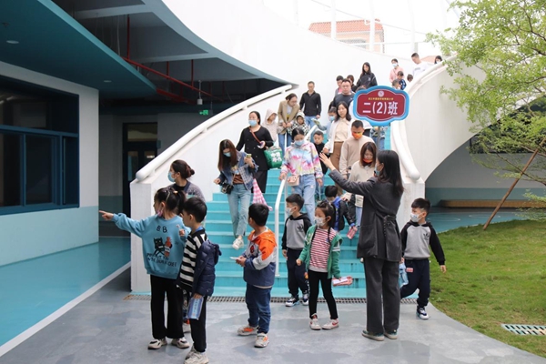 體驗(yàn)課結(jié)束后,老師們帶著孩子和家長(zhǎng)們參觀了校園空中操場(chǎng)、陶藝室、科創(chuàng)室、美術(shù)室、音樂(lè)室、跆拳道室、烘焙室、教學(xué)樓、閱讀書(shū)吧以及親水平臺(tái)。親切的笑容、熟練專業(yè)的講解得到了小朋友們和家長(zhǎng)們的認(rèn)可和稱贊!