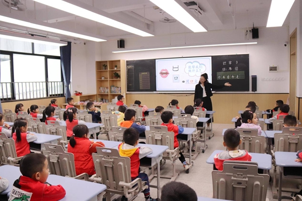 譚瑞芳老師用闖關(guān)猜謎語(yǔ)的方式讓孩子們認(rèn)識(shí)一些一年級(jí)需要學(xué)習(xí)的生字,孩子們聚精會(huì)神,充分發(fā)揮自己的想象力,熟練準(zhǔn)確地猜出每一個(gè)字謎背后的漢字。